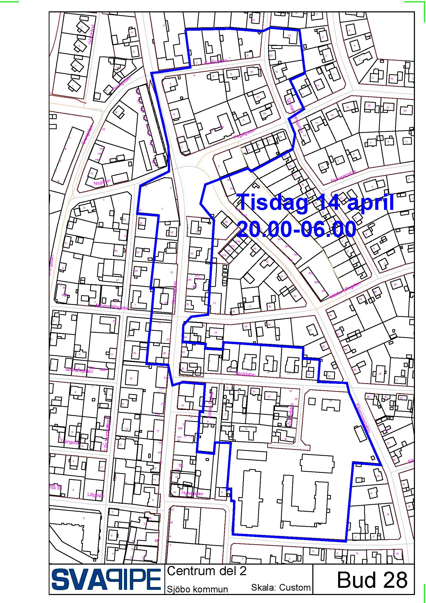 Tisdagen den 14/4 20:00-06:00 Fågelgatan mfl.