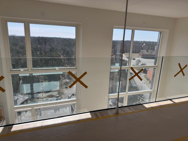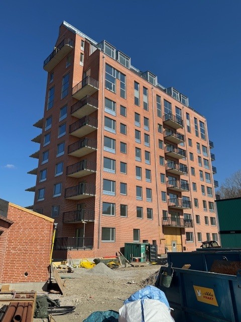 Ställningen är nere och de eleganta glasräckena på balkongen är nu på plats. Från våning 11 bjuds du på en hisnande utsikt över omgivningarna – en perfekt plats för morgonkaffet eller kvällssolen.